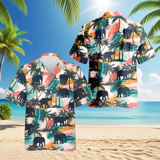 Netecom Elephant Coconut Palm Hawaiian Shirt for Men...