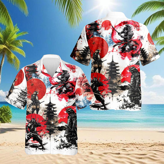 Netecom Japanese Samurai Surfing Hawaiian Shirt for ...