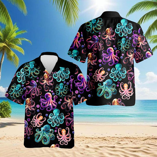 Netecom Neon Octopus Hawaiian Shirt for Men, Animal ...
