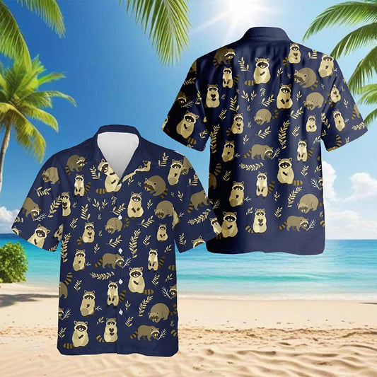 Netecom Raccoon Pattern Hawaiian Shirt for Men, Vint...
