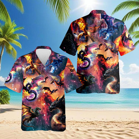 Netecom Space Dragon Hawaiian Shirt for Men, Button ...