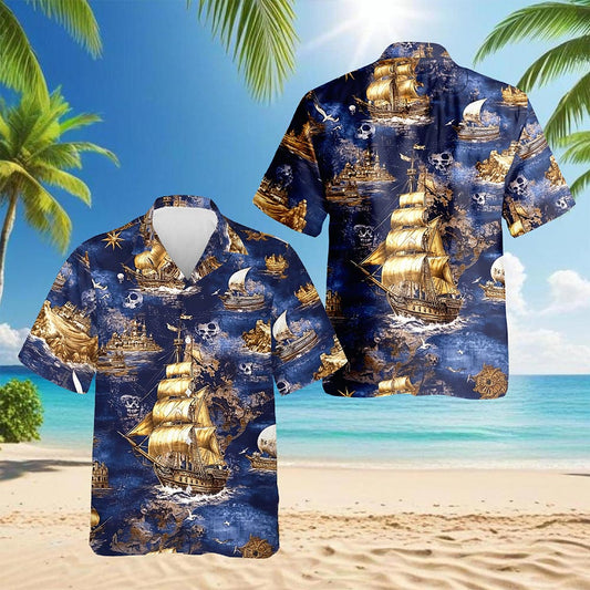 Netecom Vintage Pirate Ship Hawaiian Shirt for Men, ...