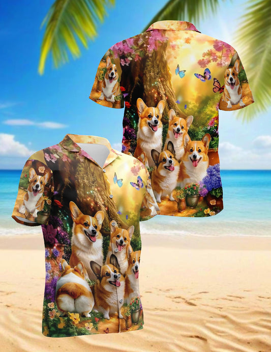 Netecom Cute Sunshine Corgi Dog Hawaiian Shirt for M...