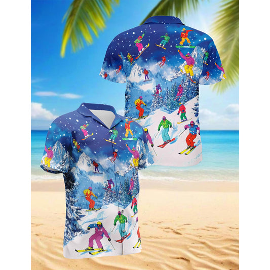 Netecom Skiing Hawaiian Shirt for Men, Tropical Styl...