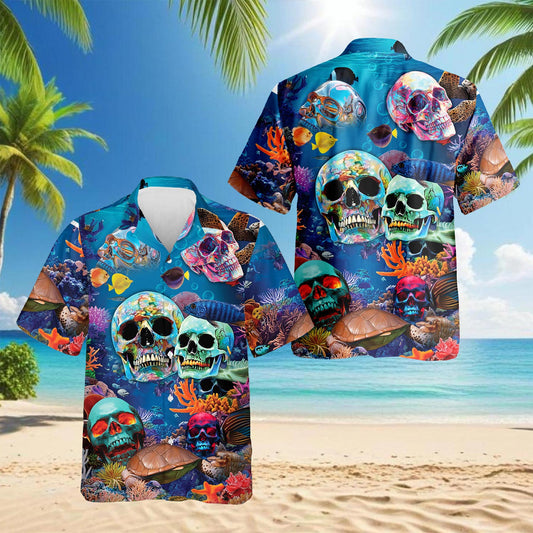Netecom Ocean Skull Hawaiian Shirt for Men, Ocean St...