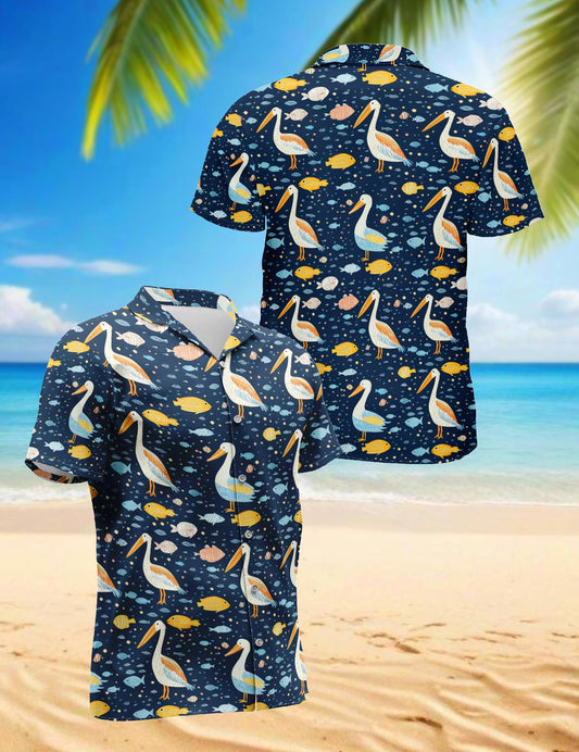 Netecom Pelican Fish Hawaiian Shirt for Men, Vintage...