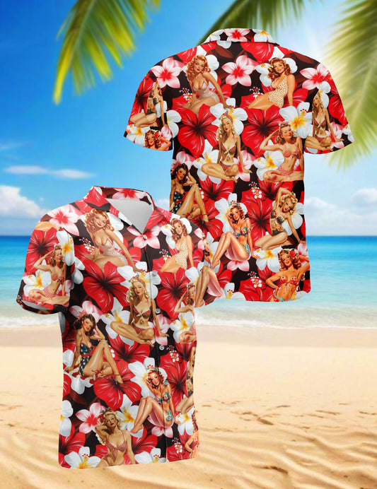 Netecom Pinup Girls Hawaiian Shirt for Men, Tropical...