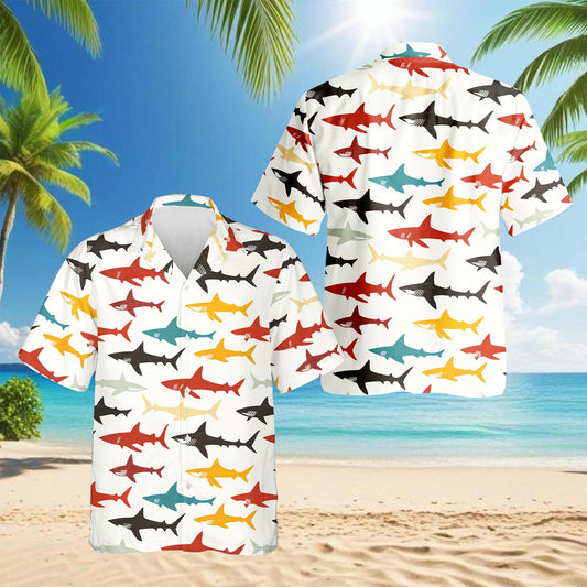 Netecom Colorful Shark Hawaiian Shirt for Men, Vinta...