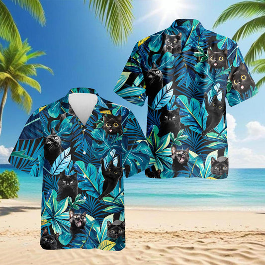 Netecom Cool Black Cat Hawaiian Shirt for Men, Cat L...