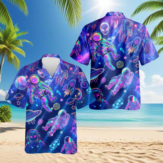 Netecom Neon Astronauts Planets Hawaiian Shirt for M...