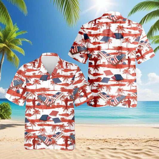 Netecom Palm Cornhole US Flag Hawaiian Shirt for Men...