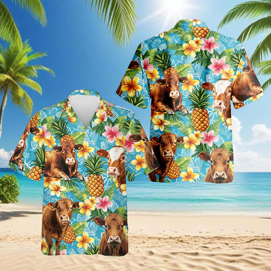 Netecom Red Angus Cattle Pineapple Hawaiian Shirt fo...