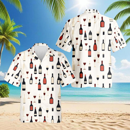 Netecom Red Wine Bottle And Glass Hawaiian Shirt for...