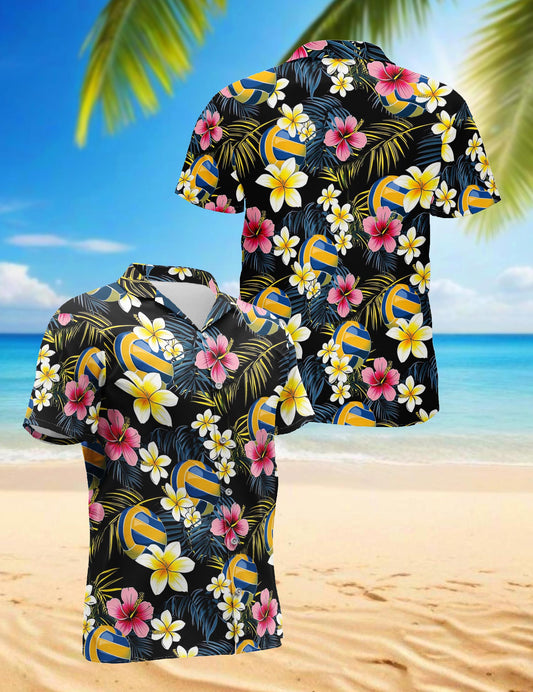 Netecom Volleyball Flower Hawaiian Shirt for Men, Tr...