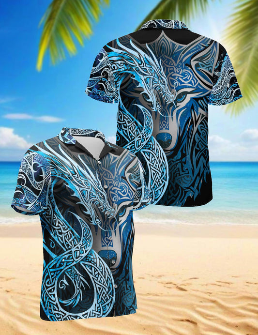 Netecom Fenrir Blue Hawaiian Shirt for Men, Button D...