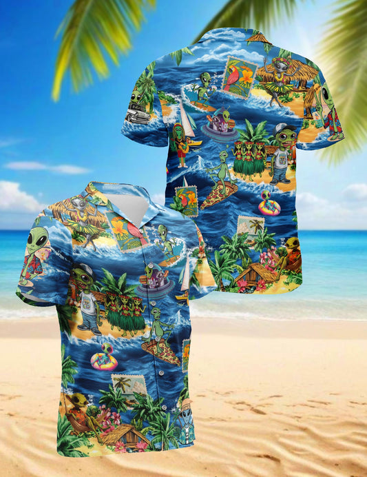 Netecom Funny Alien Surfing Hawaiian Shirt for Men, ...