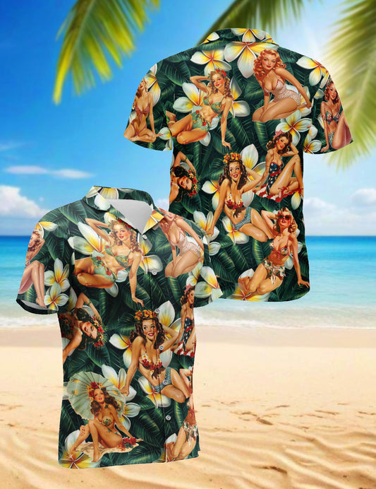 Netecom Pin Up Girl Dark Green Hawaiian Shirt for Me...