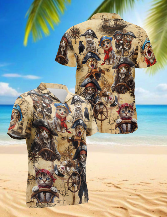 Netecom Pirate Cat Hawaiian Shirt for Men, Button Do...