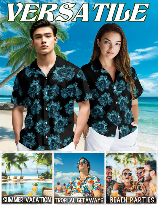 Netecom Green Turtle Hawaiian Shirt for Men, Button ...