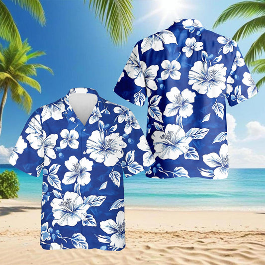 Netecom Tropical Hibiscus Blue Hawaiian Shirt for Me...