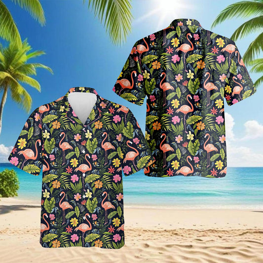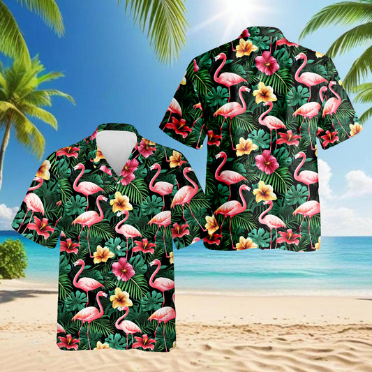 Netecom Flamingo Hibiscus Tropical Hawaiian Shirt fo...