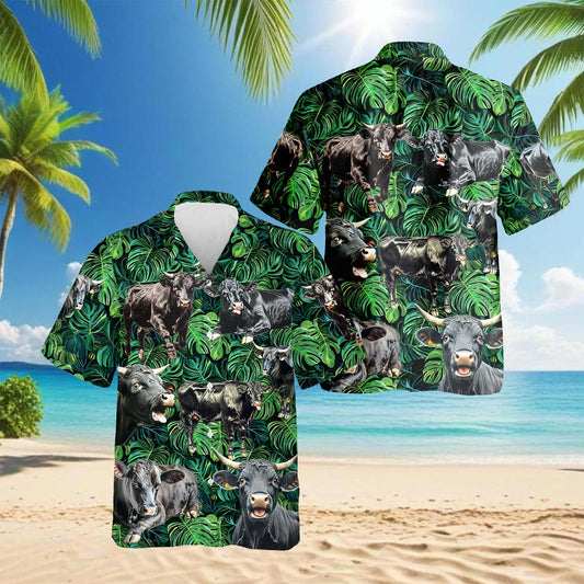 Netecom Black Angus Cattle Tropical Hawaiian Shirt f...