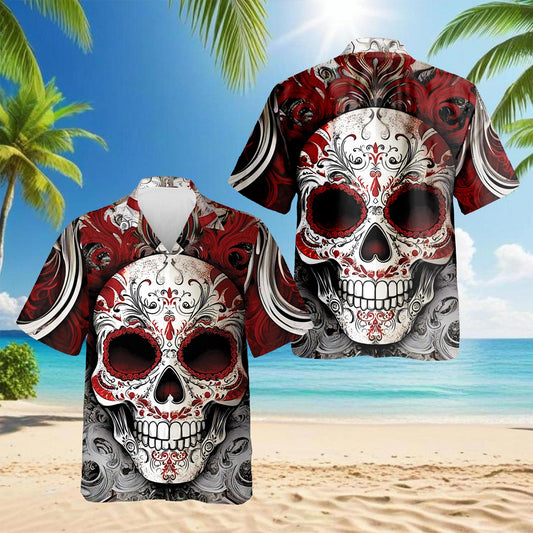 Netecom Day Of Dead Red Sugar Skull Hawaiian Shirt f...