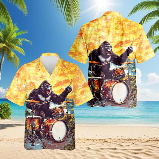 Netecom Gorilla Plays Drum Hawaiian Shirt for Men, B...
