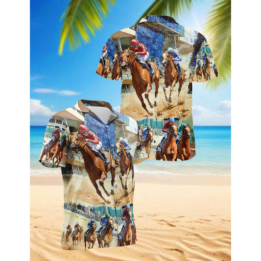 Netecom Funny Horse Racing Hawaiian Shirt for Men, H...