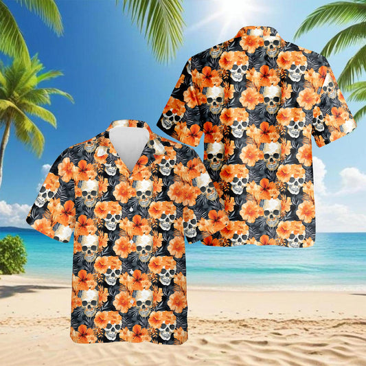 Netecom Orange Skull Hawaiian Shirt for Men, Button ...