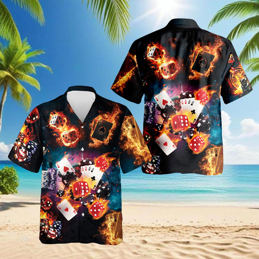 Netecom Poker Fire Hawaiian Shirt for Men, Button Do...