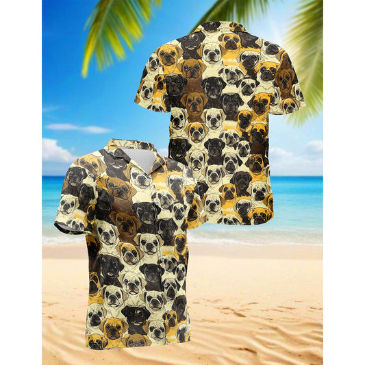 Netecom Pug Hawaiian Shirt for Men, Button Down Summ...