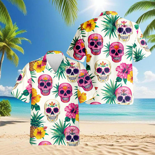 Netecom Sugar Skull Tropical Hawaiian Shirt for Men,...