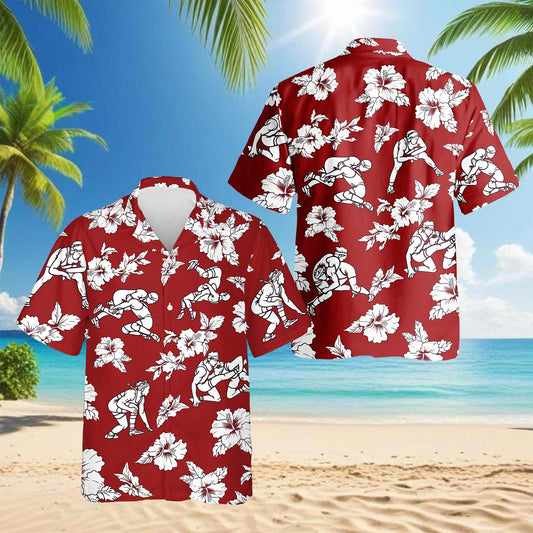 Netecom Wrestling Red Hibiscus Hawaiian Shirt for Me...