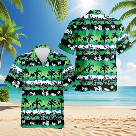 Netecom Wrestling Time Green Palm Tree Hawaiian Shir...