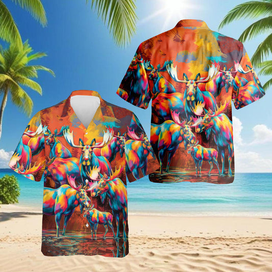 Netecom Moose Colorful Hawaiian Shirt for Men, Butto...
