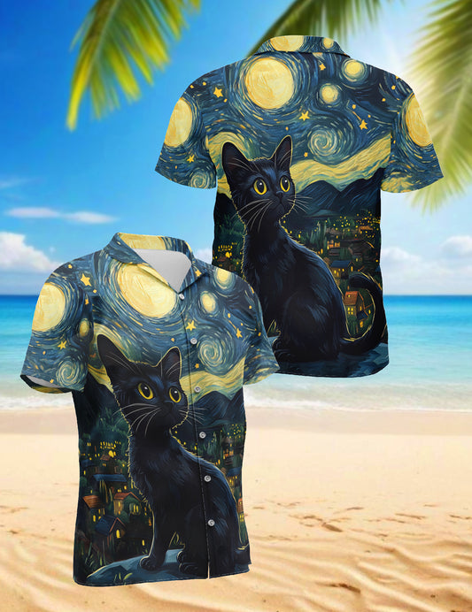 Netecom Starry Night Cat Hawaiian Shirt for Men, But...