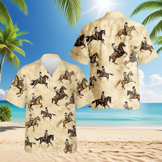 Netecom Brown Horse Rodeo Hawaiian Shirt for Men, Bu...