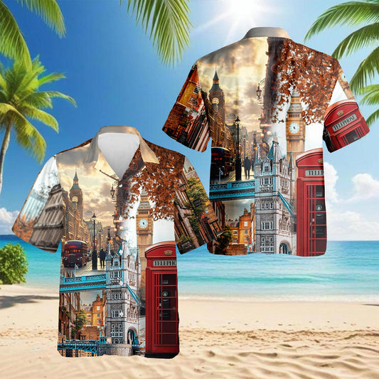 Netecom London Vintage Hawaiian Shirt for Men, Butto...