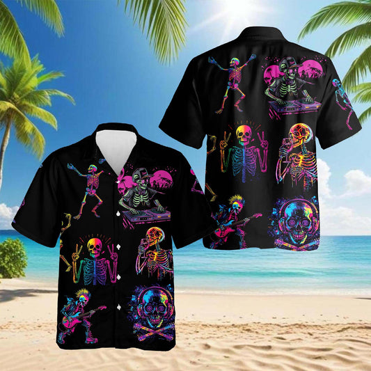 Netecom Skeleton Dance Hawaiian Shirt for Men, Butto...