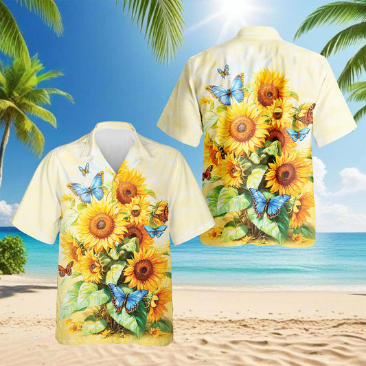 Netecom Sunflower Butterfly Hawaiian Shirt for Men, ...