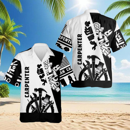 Netecom Carpenter Black White 3D Hawaiian Shirt for ...