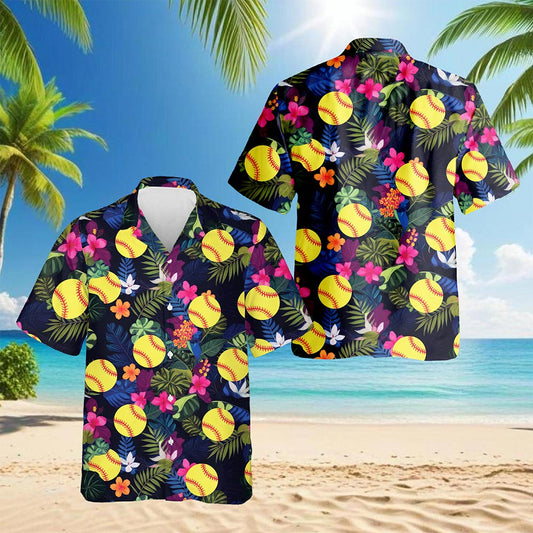 Netecom Softball Hawaiian Shirt for Men, Hibiscus Bu...
