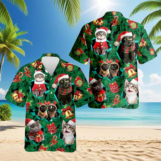Netecom Christmas Cats Hawaiian Shirt for Men, Cute ...