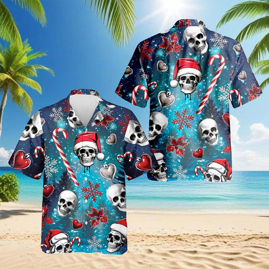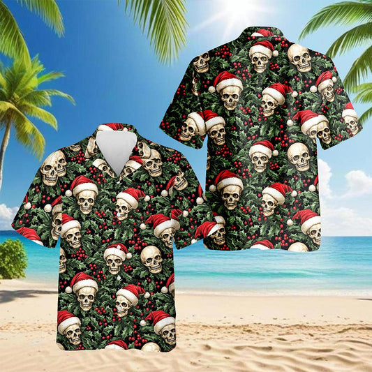 Netecom Skull Santa Hat Christmas Hawaiian Shirt for...