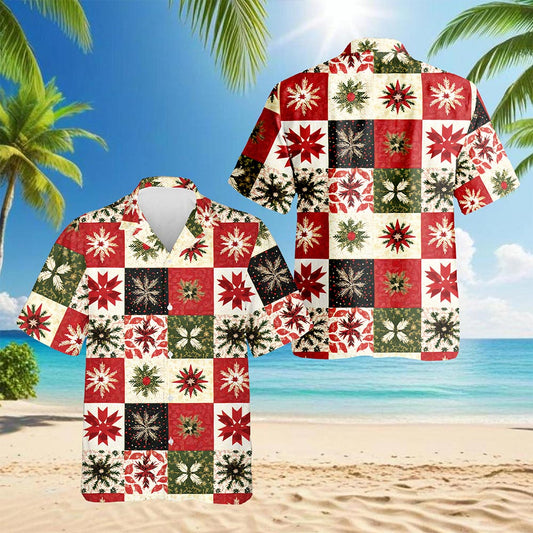 Netecom Christmas Quilt Pattern Hawaiian Shirt for M...