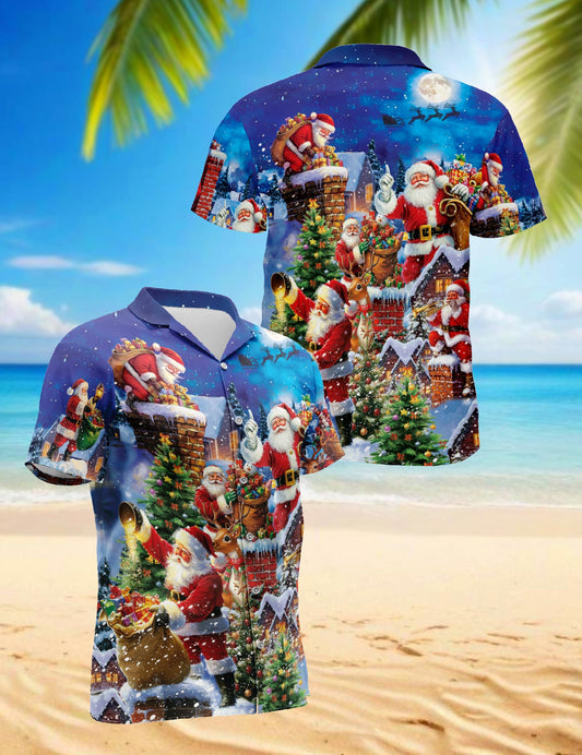 Netecom Christmas Rooftop Santa Claus Hawaiian Shirt...