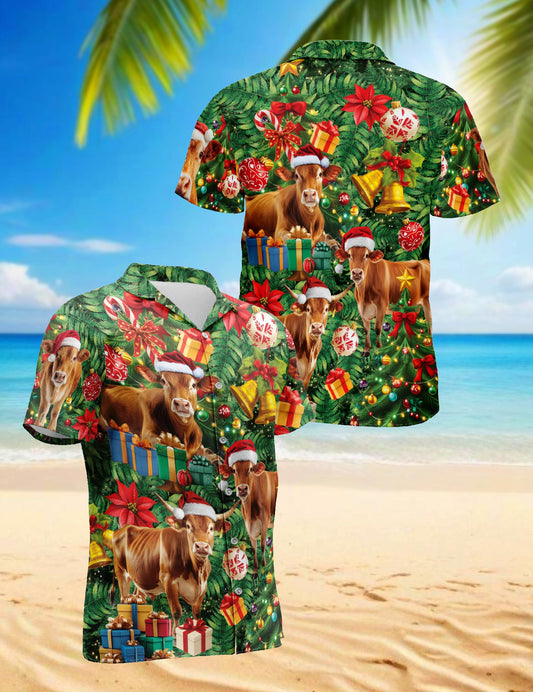Netecom Christmas Cow Hawaiian Shirt for Men, Santa ...