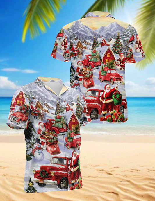 Netecom Christmas Red Truck Hawaiian Shirt for Men W...