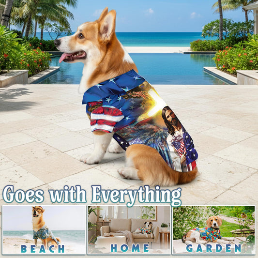Netecom Matching America and Jesus Bless Hawaiian Shirt for Dog and Owner, Aloha Summer Shirt, Patriotic Faith Print Outfit for Pet and Human, Beach Vacation Casual Wear
